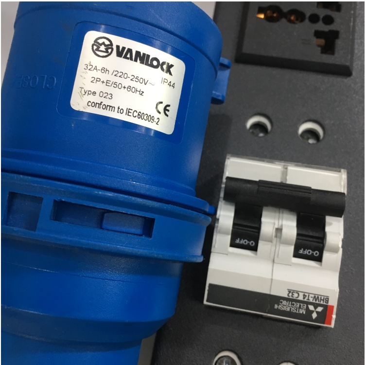 Loại sản phẩm: Thanh Phân Phối Nguồn Điện 6 Ổ Cắm 3 Chấu Chuẩn Đa Dụng MCB BHW-T4 C32 MITSUBISHI Công Suất Max 32A Universal 6 Way UK Outlet to IP44 IEC309-2 Plug Power Cord 3x2.5mm Length 3M