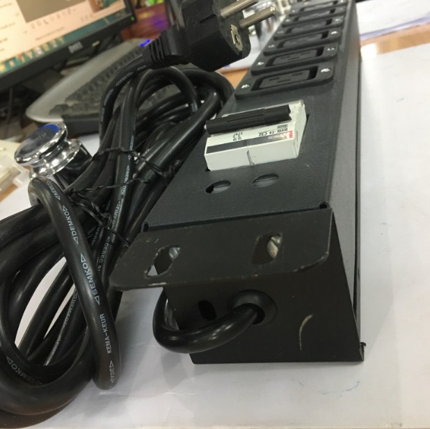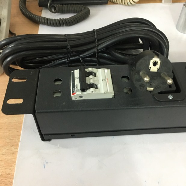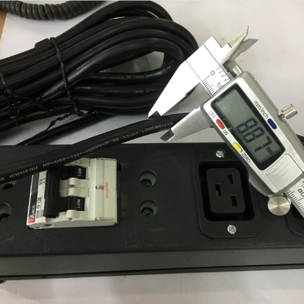 Sản phẩm là sự kết hợp pha chộn của nhiều linh kiện thiết bị điện với nhau như MCB BHW-T4 1P C32 Mitsubishi 32A 4.5kA + dâp cáp điện đấu nổi 6 ổ cắm C19 CADISUN 3x1.5mm + hộp vỏ sắt phun sơn tính điện tạo nên một bộ PDU 1U Rack Moun 19" 6 Way IEC C19 Socket dùng an toàn cho những thiết bị cắm nối nguồn điện trên tường dùng tổng suất chịu tải dòng điện Max: 16A 3500W, cáp đấu nối với nguồn điện trung tâm trên tường Input Power Plug With Power Cord 16A 250V 3x1.5mm Cable Length 4.3M