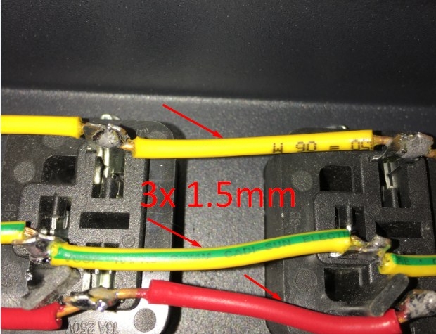 Số dây dẫn điện trong PDU: 3 dây màu nâu, xanh dương và xanh lá cây với một dải màu vàng