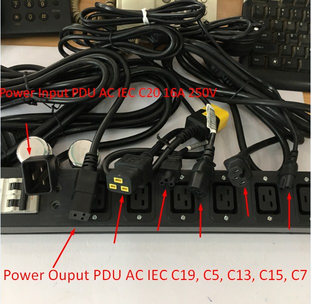 Tổng công xuất thiết bị hoạt động được cắm nối trên PDU vượt quá 16A thiết bị hoạt động không an toàn khi ấy người sử dụng phải mua các PDU của APC, HP.. Với chuẩn cắm ổ điện Commando Plug Socket IP44 32A.