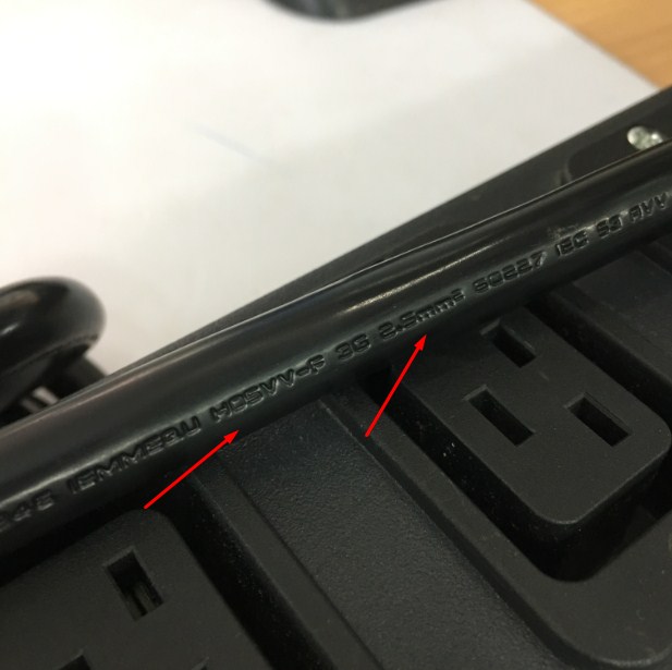 Chiều dài sợi cáp đấu nối PDU với nguồn cấp điện chuẩn C20 16A 250V 14 AWG 3x2.5mm Cable E-JUN EL-99 dài 2.5M