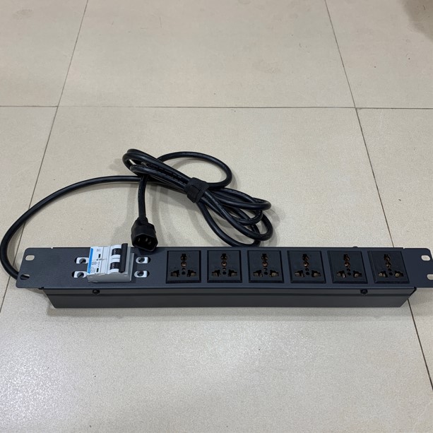 PDU 1U Rack Moun 19" Universal 6 UK Way Outlet Có MCB |