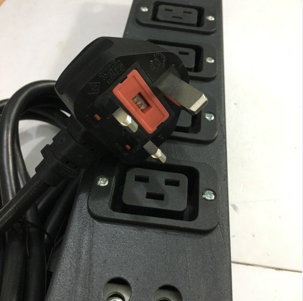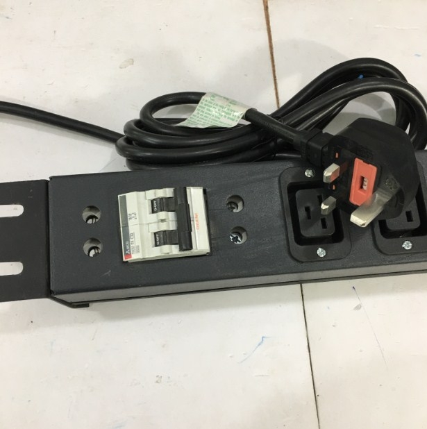 Loại sản phẩm: Thanh Phân Phối Nguồn Điện PDU Rack Mount 19 inch 1U 6 Way IEC C19 PDU MCB BHW-T4 C32 MITSUBISHI Công Suất Max 13A to UK 3 Pin Plug Power Cord 3x1.5mm Length 3M