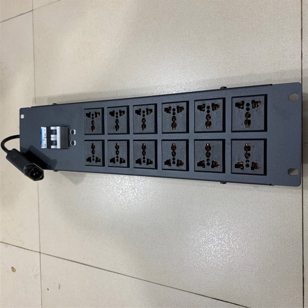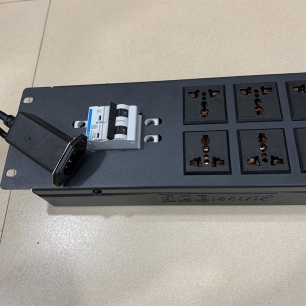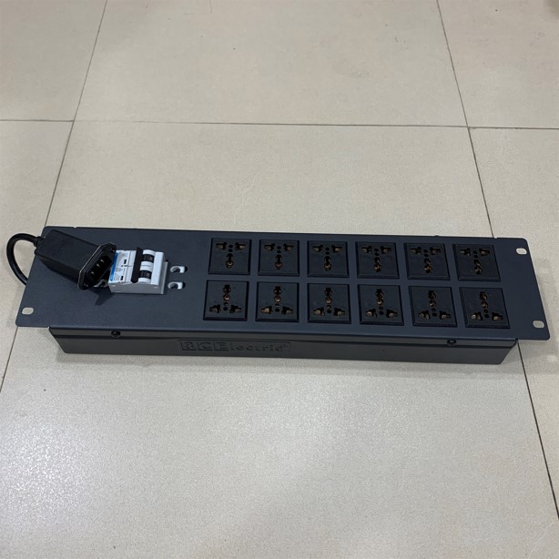 Thanh Phân Phối Nguồn Điện PDU Rack Universal 12 Way UK Outlet Có MCB Công Suất Max 16A to C14 Male Plug Power Cord