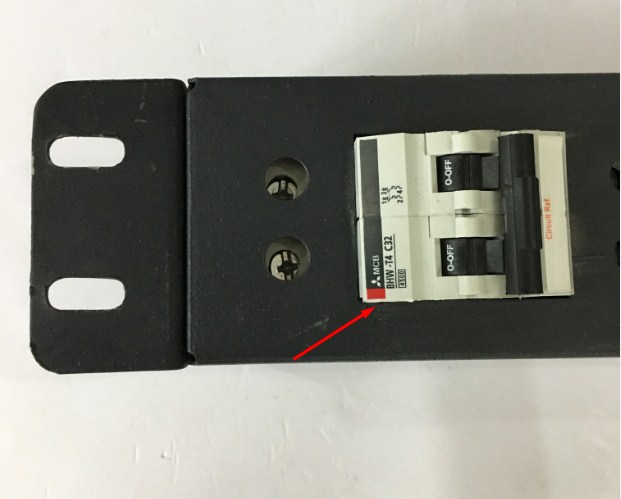 Phích cắm điện A: Đầu bắt cos đấu dây 1 pha MCB BHW-T4 1P C32 Mitsubishi 32A 4.5kA, lỗ luồn cáp trên PDU 10mm